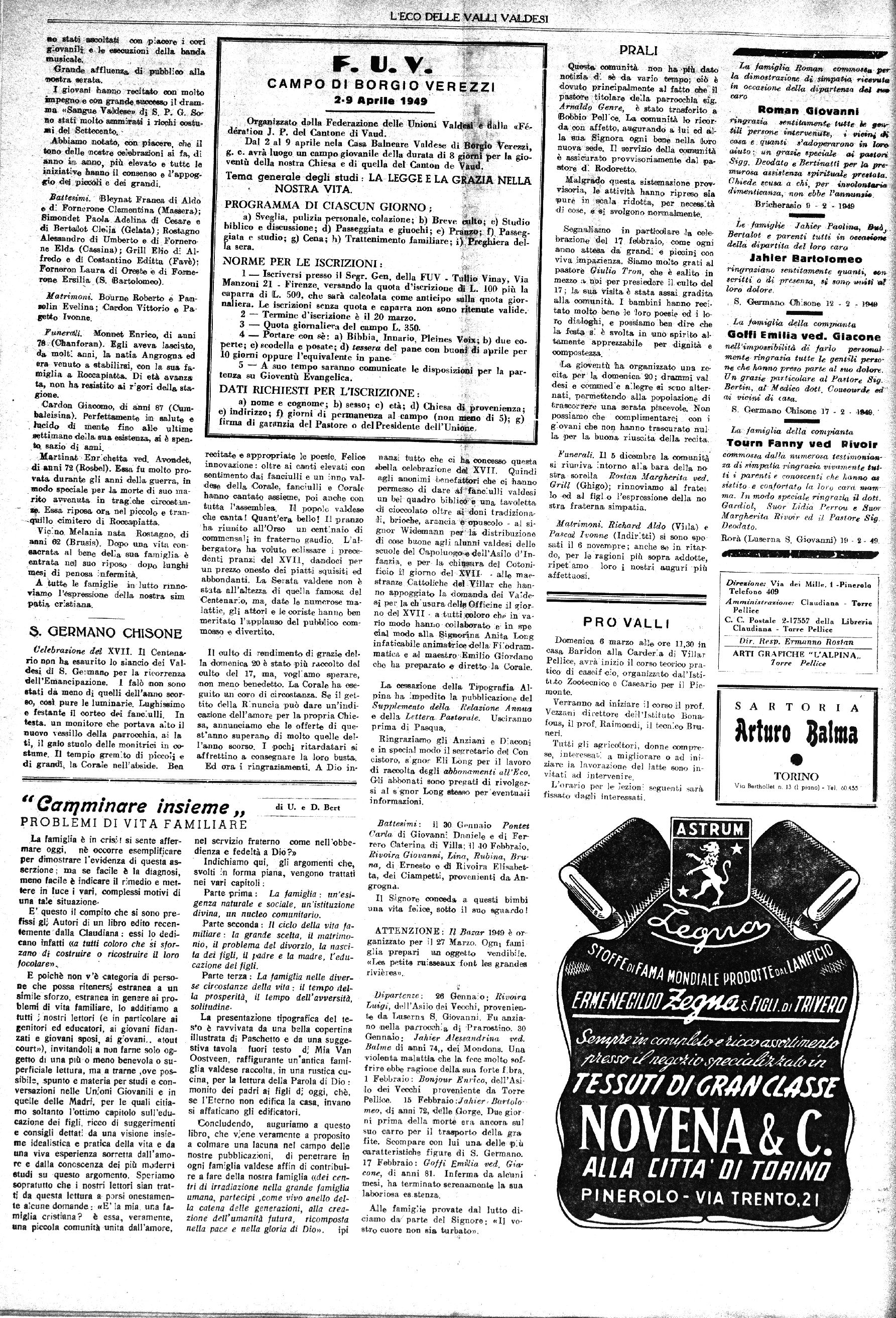 TORRE PELLICE, 4 Marzo 1949