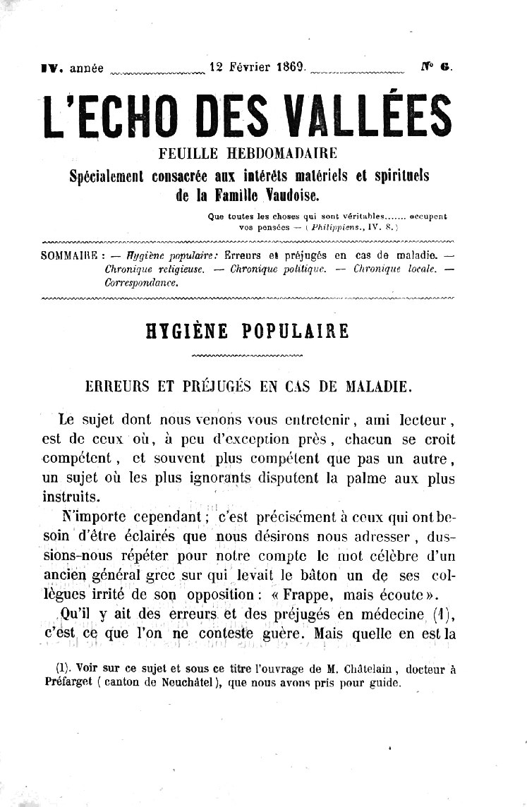 préjugés en cas de maladie, d’une manière à la fois très-captivante et très-humoristique. Comme on peut s’en assurer en lisant le présent numéro , l’Echo
