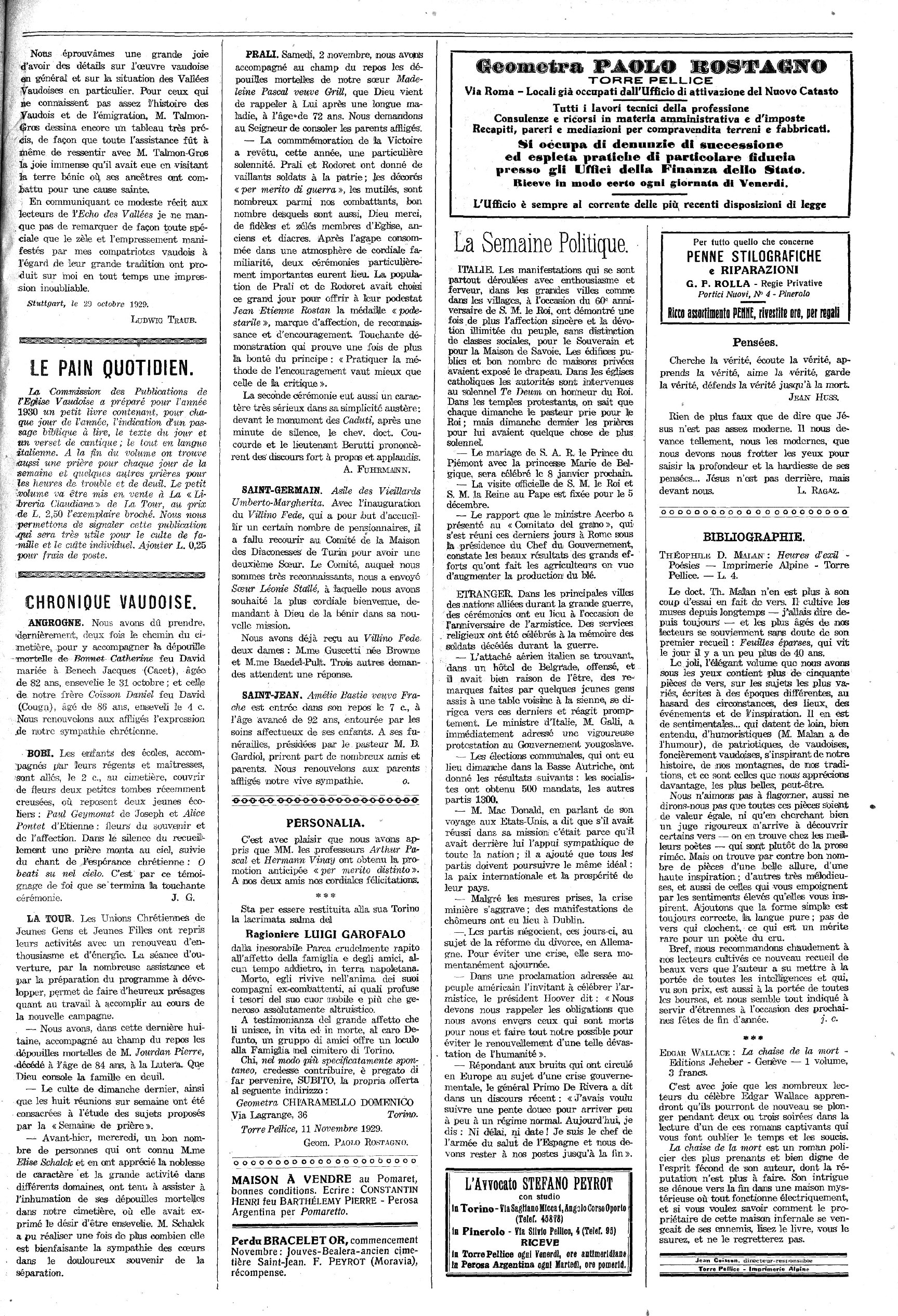 S’adresser : pour la Rédaction, à M. le Pasteur Jdlés Troh - Torre Pellice