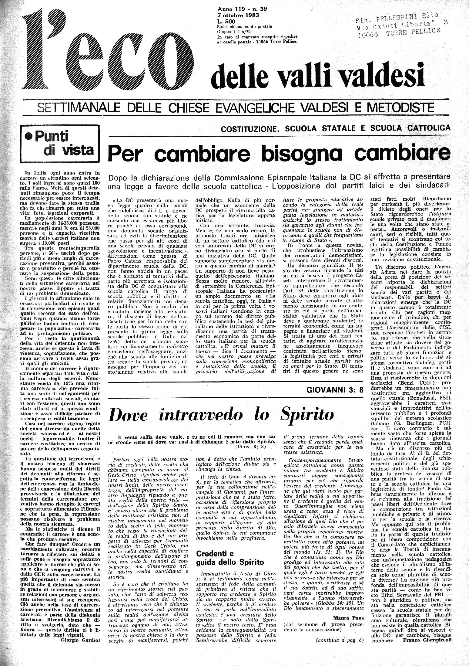 a: casella postale - 10066 Torre Pellice.