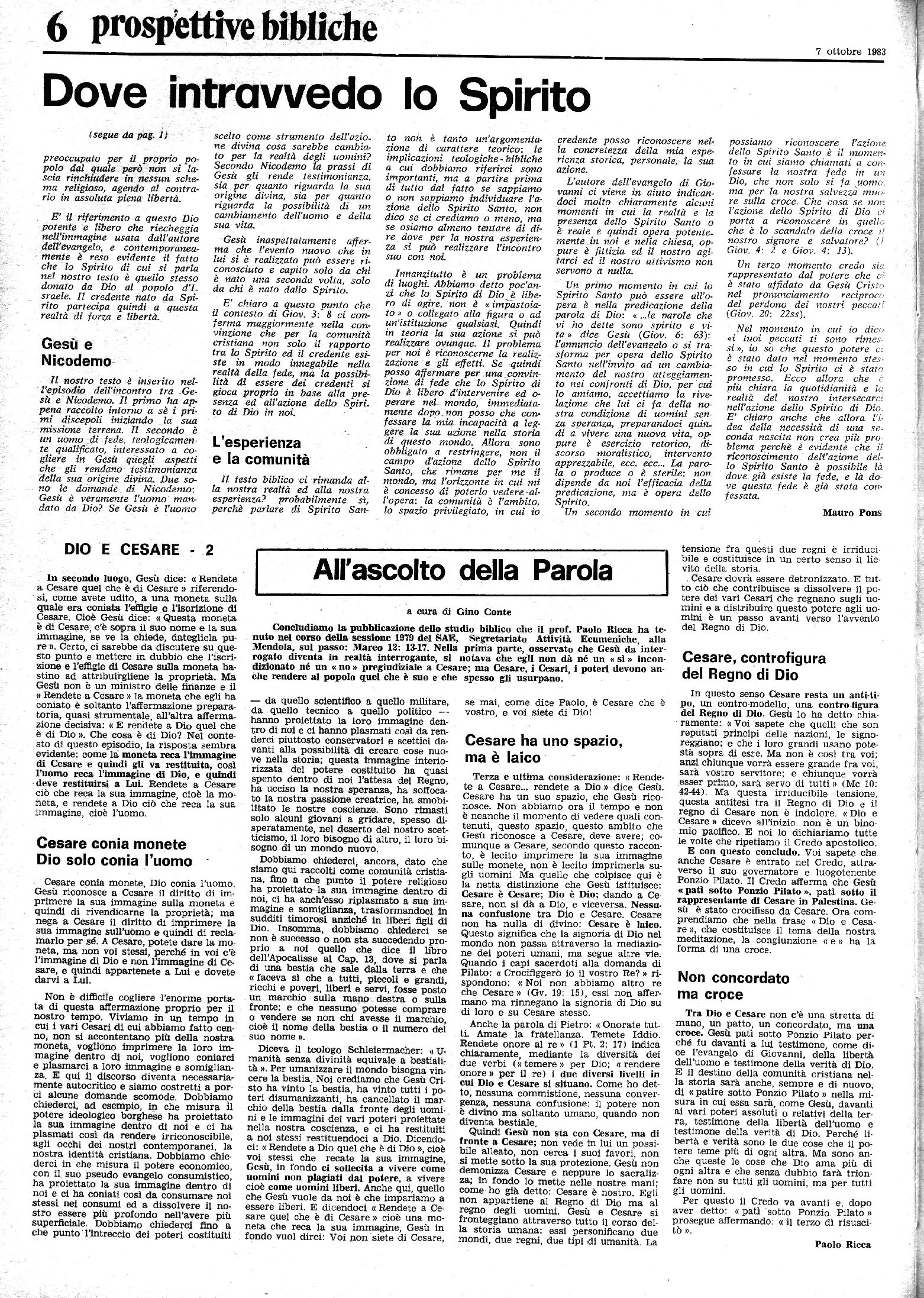 Allargando il discorso mi pare che — specie come credenti