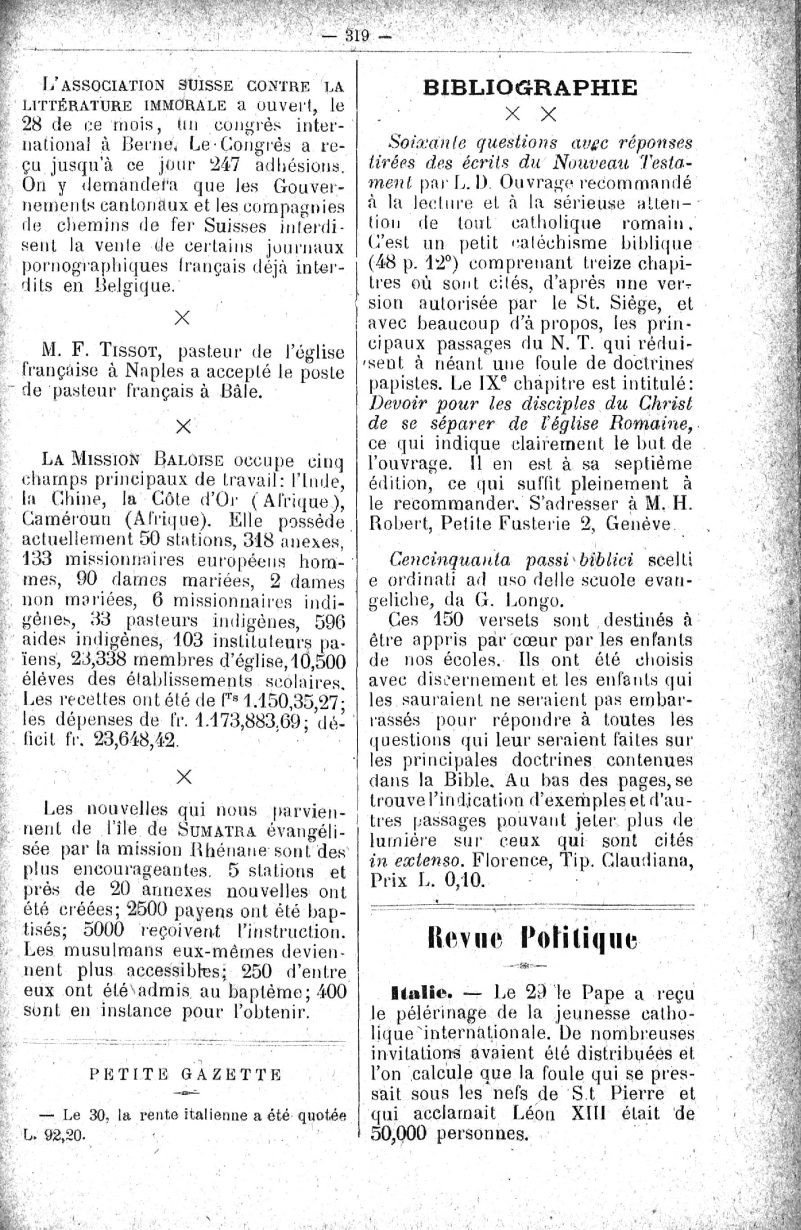 — Nouv, Relig. — Bihliog. — Rev. Poî.