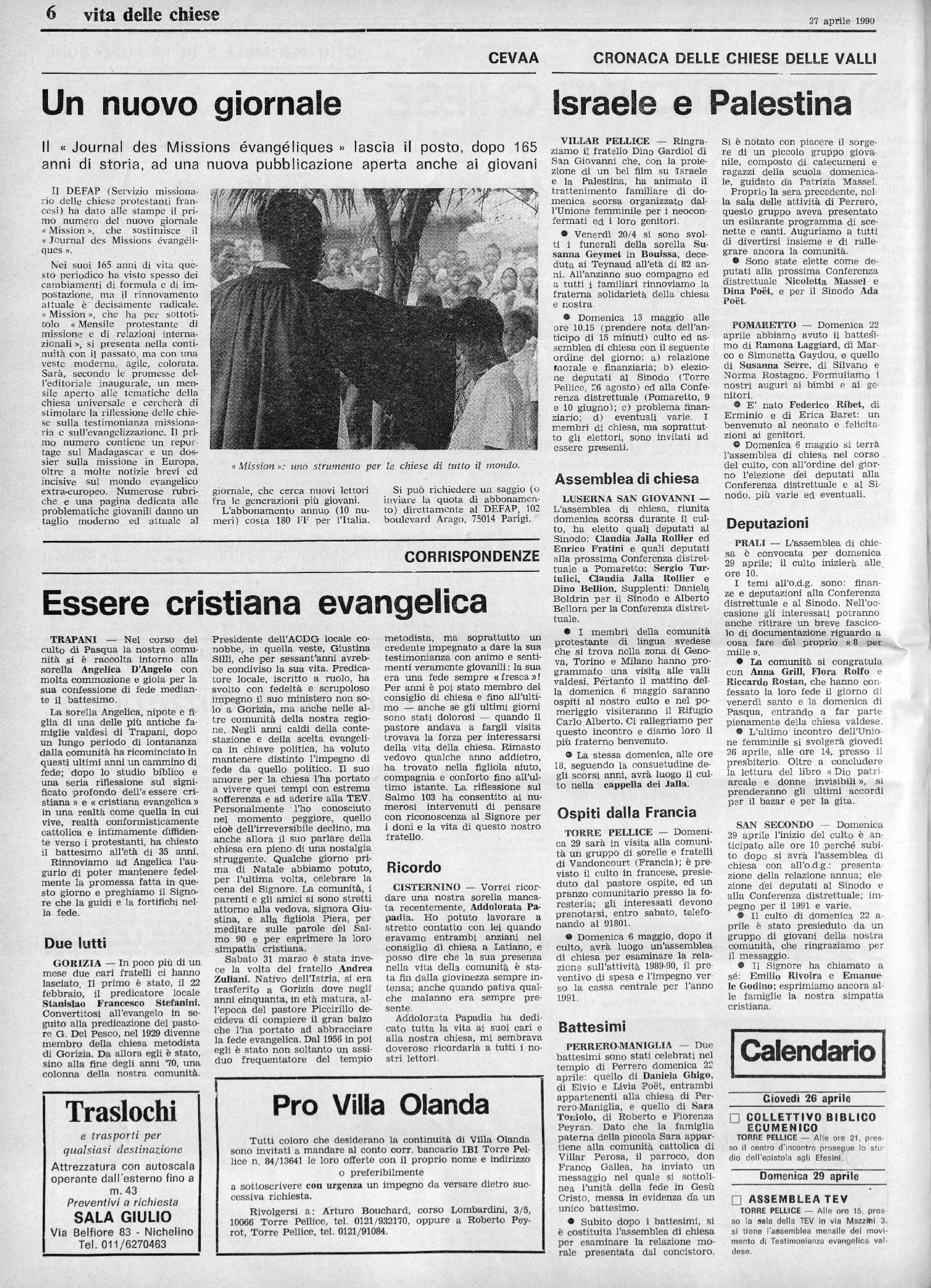 SETTIMANALE DELLE CHIESE EVANGELICHE VALDESI E METODISTE
