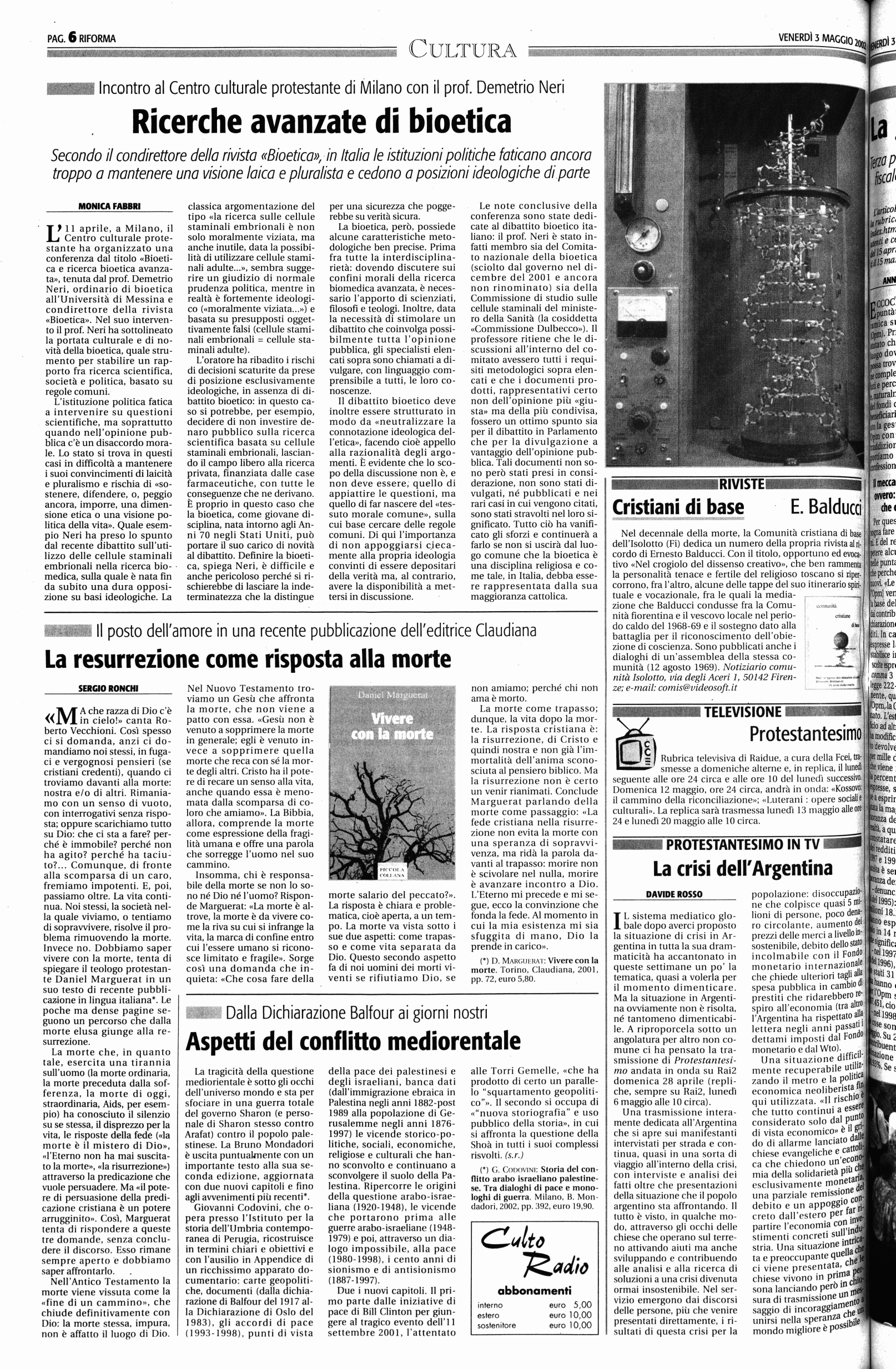 SETTIMANALE DELLE CHIESE EVANGELICHE BATTISTE, METODISTE, VALDESI