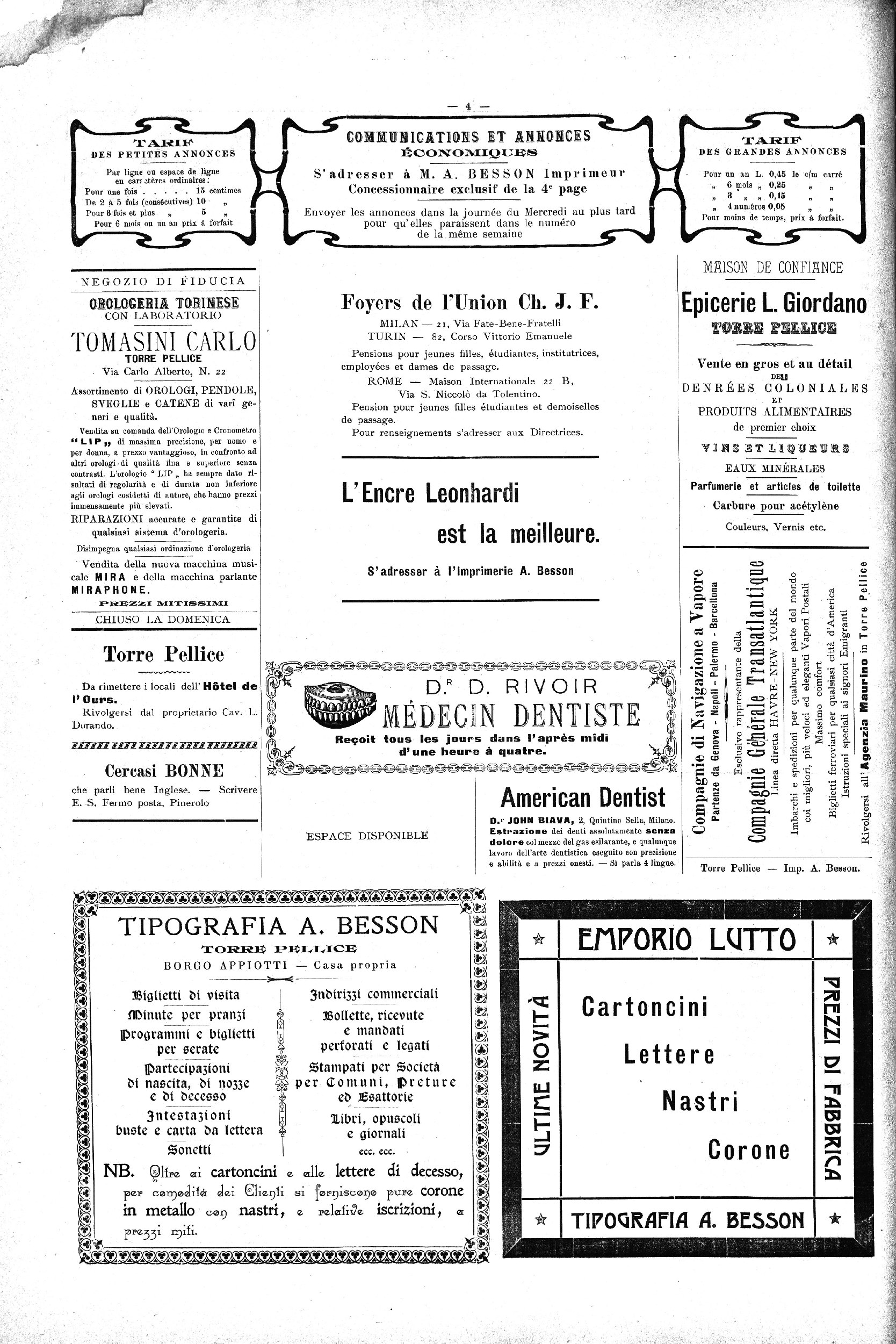 S’adresser pour la Hédaetion A M. N. Toum, prof., Torre Pellice,