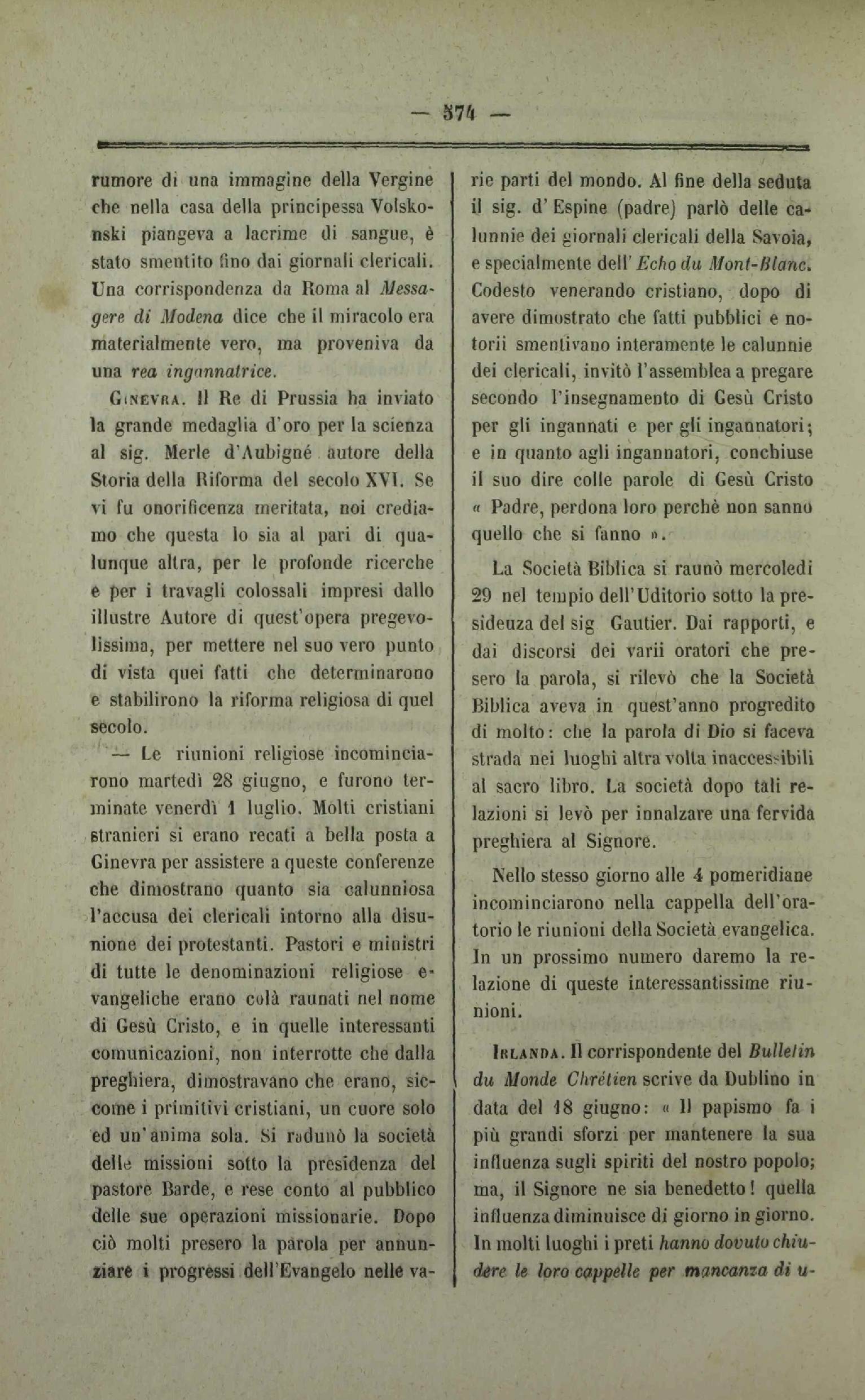 Stampa clericale. — La libertÀ religiosa e l’Austria. — I Cristiani Evangelici di