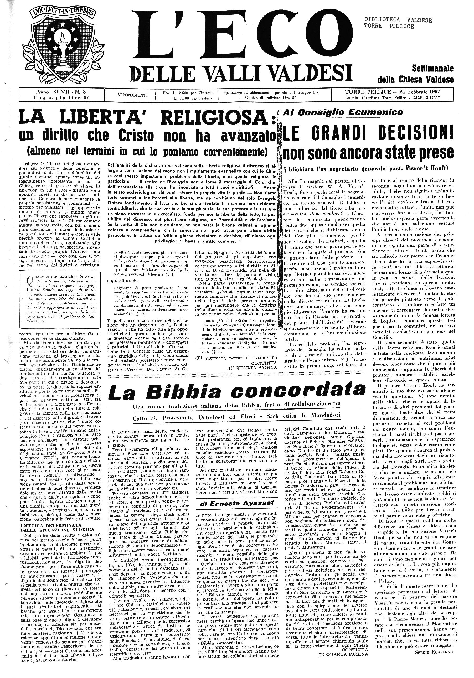 TORRE PELLICE — 24 Febbraio 1967
