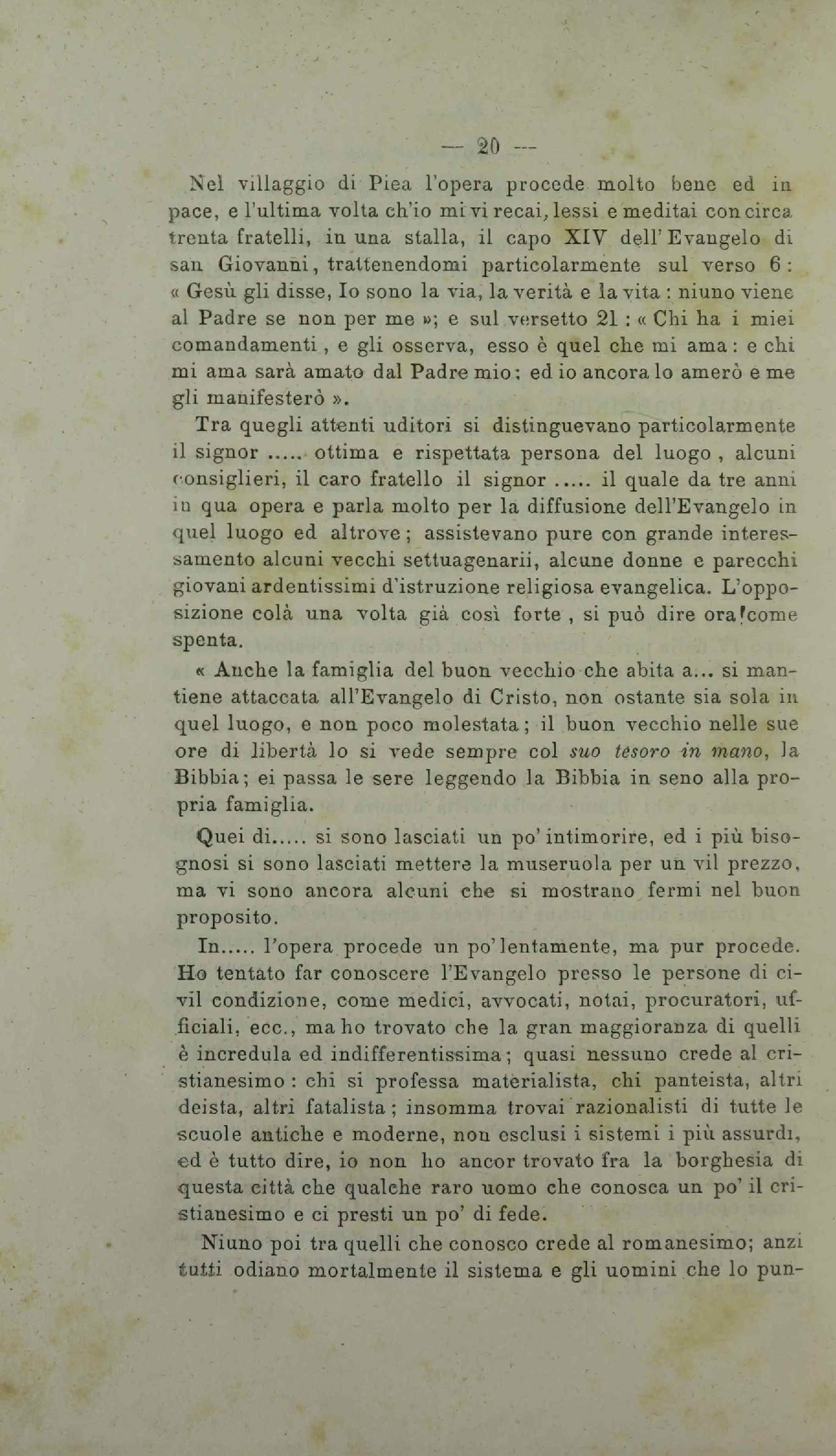 Che Iddio misericordioso voglia esser placato verso la nostra cara patria, l'Italia, e voglia presto liberarla dalla durissima frale schavitù, dalla tirannia teocratica clericale. Amen,