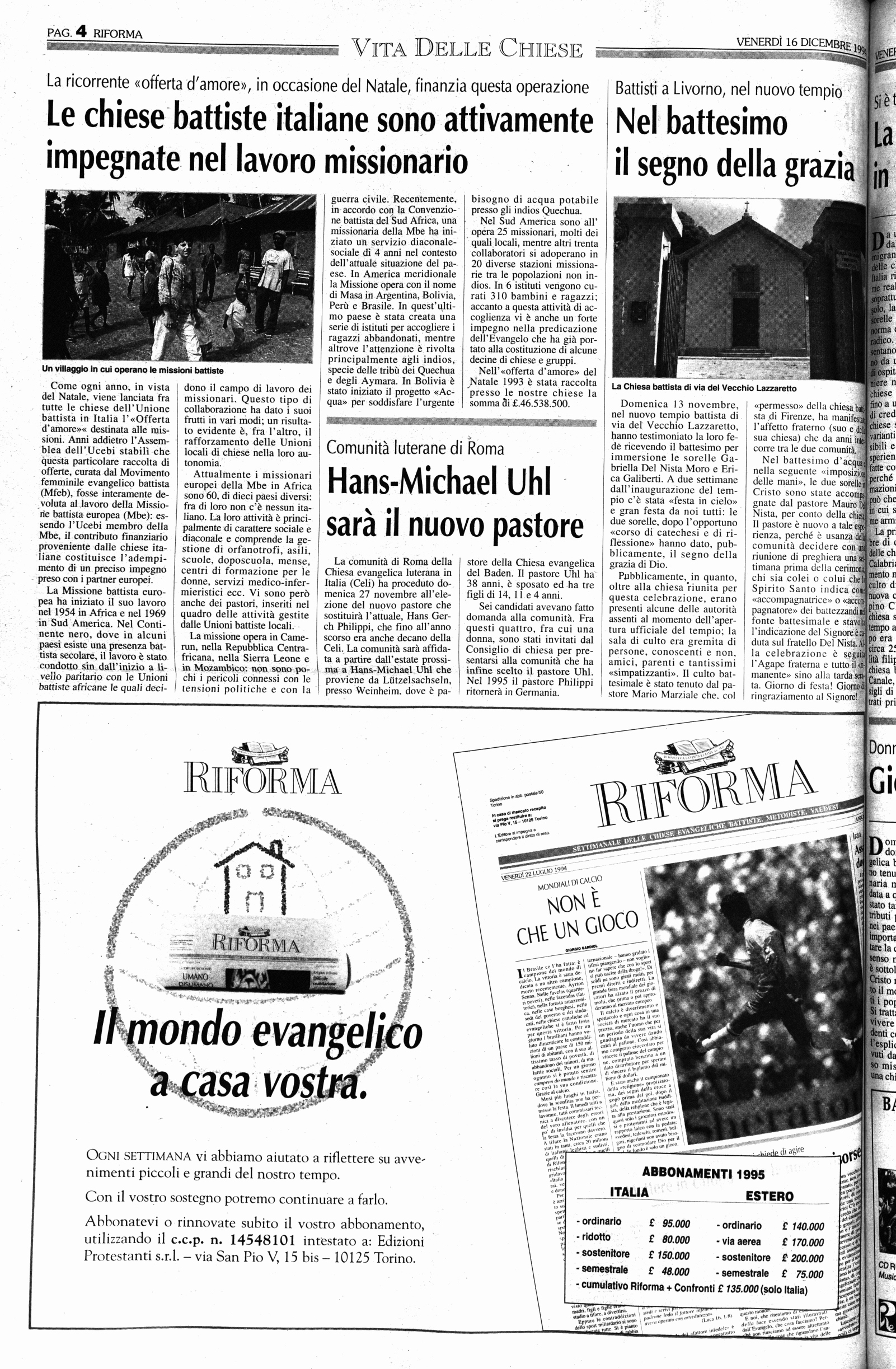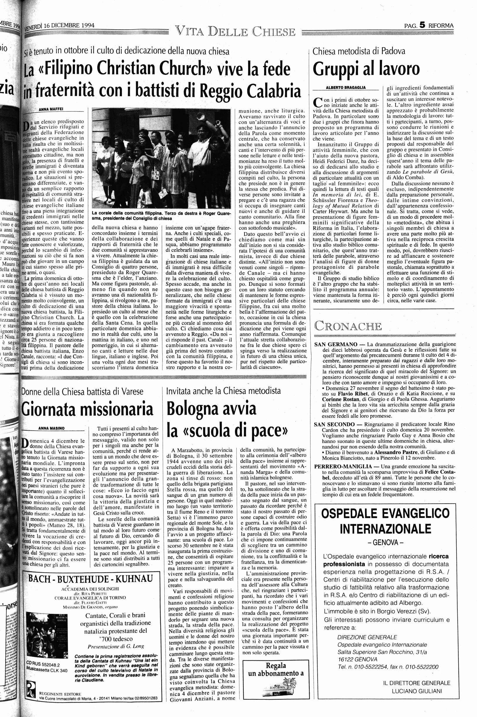 SETTIMANALE DELLE CHIESE EVANGELICHE BATTISTE, METODISTE, VALDESI
