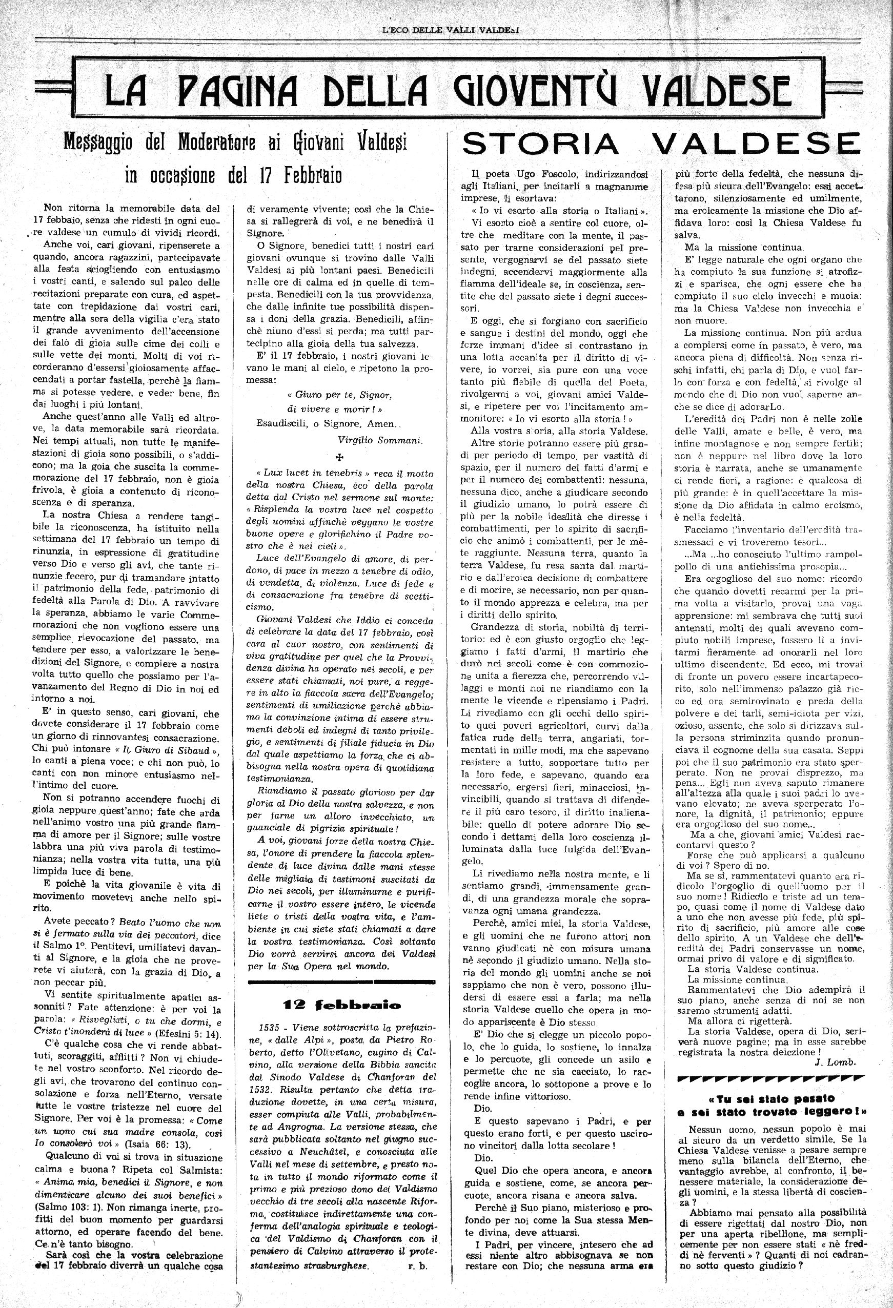 La Tavola. Valdese ha stabilito che la