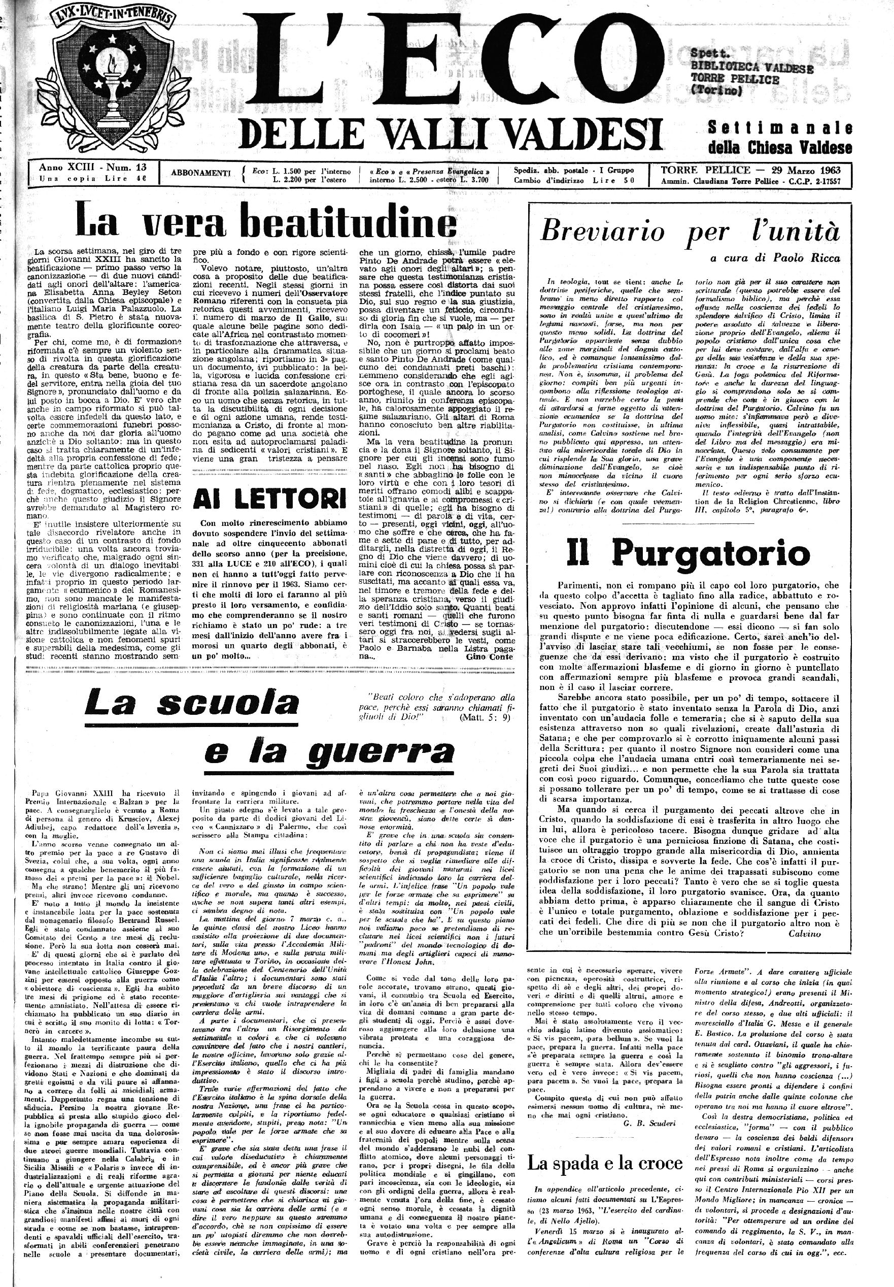 Anno xeni - Num. 13 ABBONAMENTI / Eco: L. 1.500 per l’interno « Eco Dea Presenza Evangelica > | Spediz. abb. postale • I Gruppo 1 TORRE PELLICE — 29 Marzo 1963
