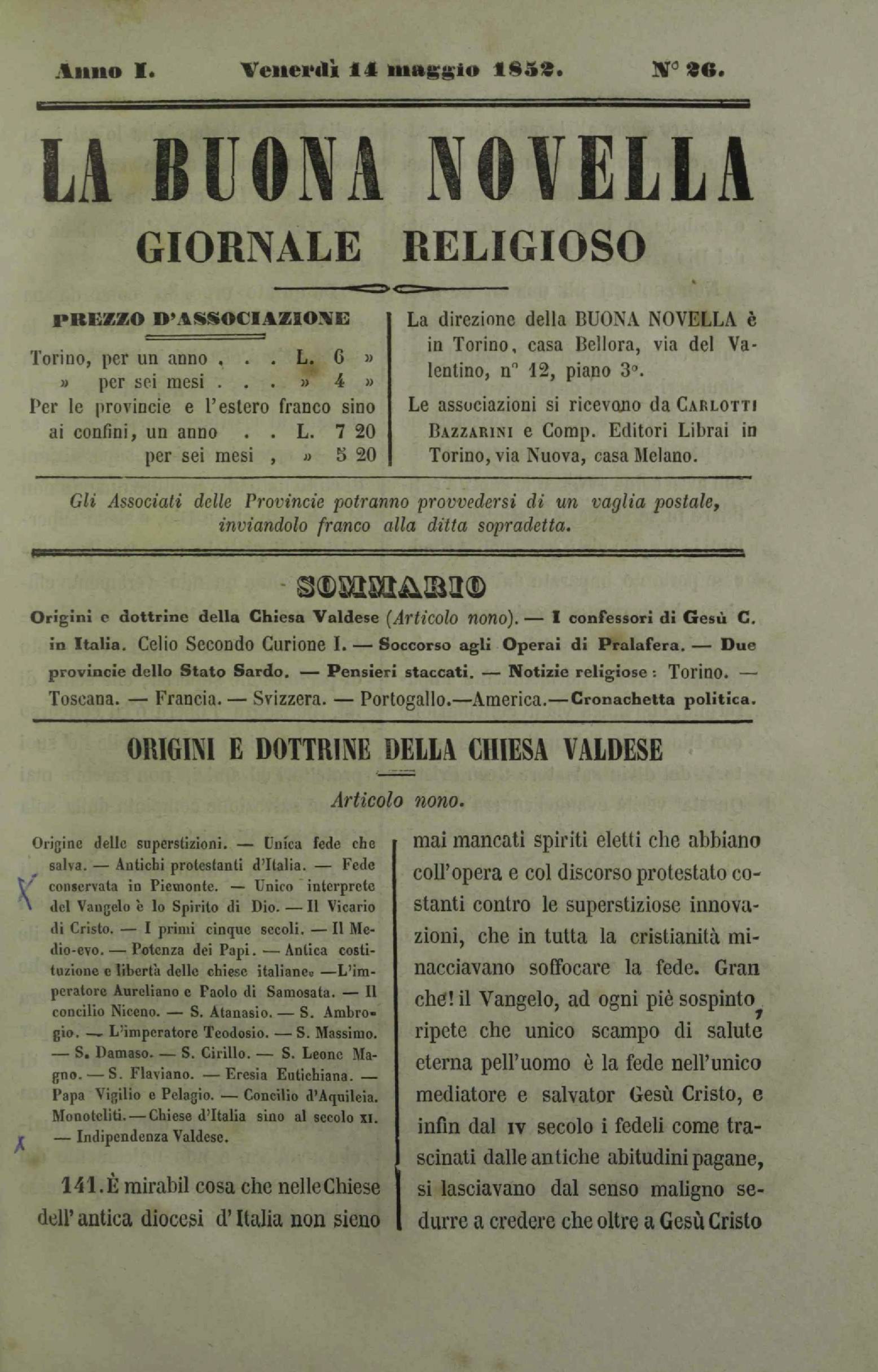 Origini c dottrine della Chiesa Valdese (Avticolo Uono). — I confessori di Gesù C.