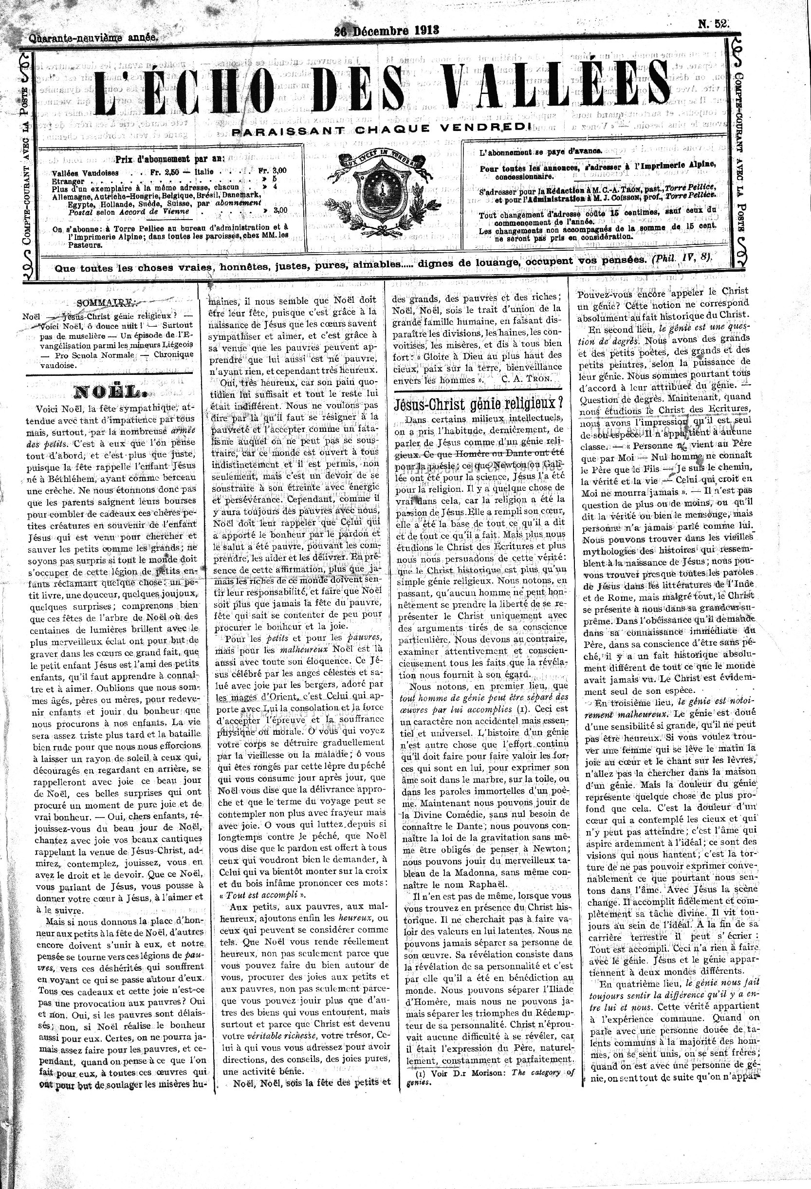 pour les Vallées, par là‘Soci^f^ Biblique