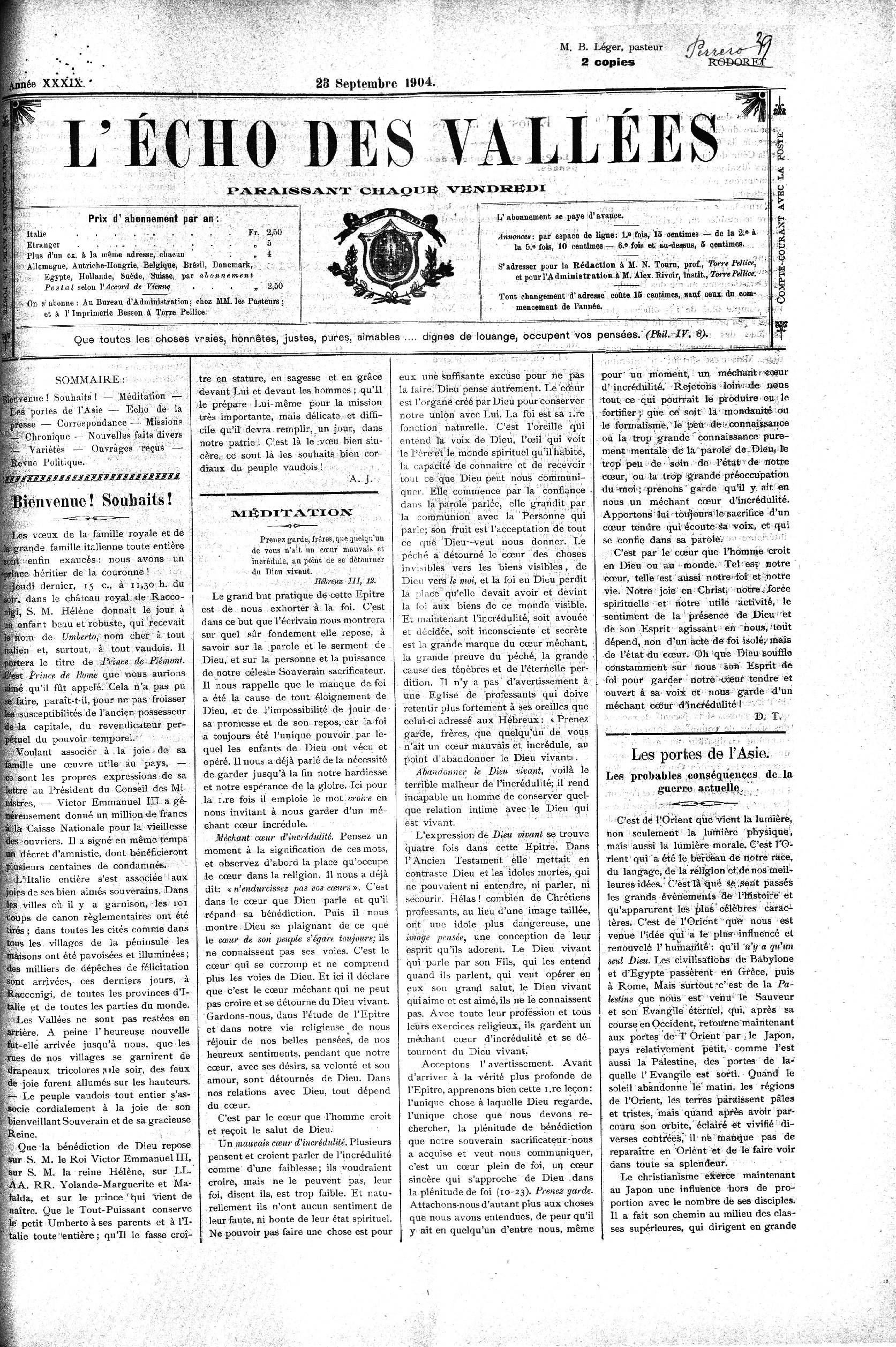 S’adresser pour la Rédaction à M. N. Town, ^toî.. Torre Pellice]
