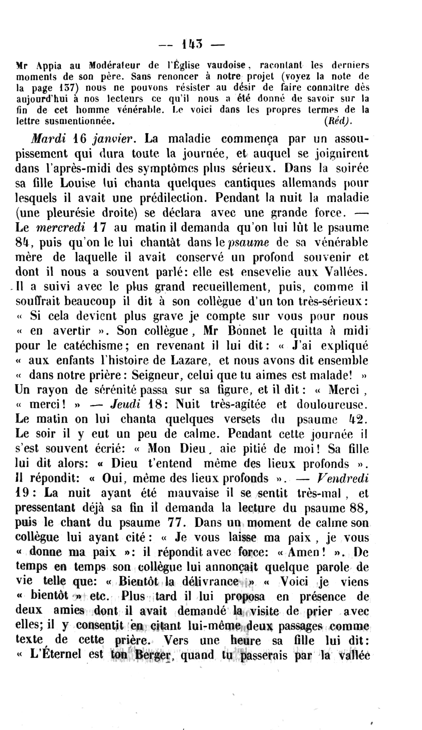 « J ’a! pensé » nous écrivait notre vénérable frère Mr le pasteur