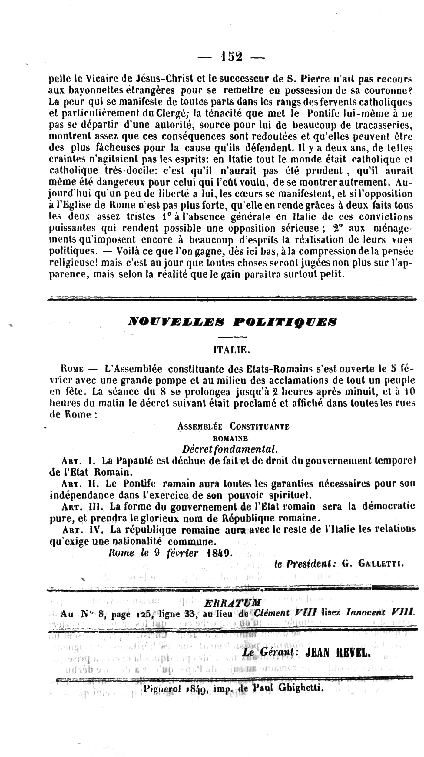 Rome le 9 février 1849.
