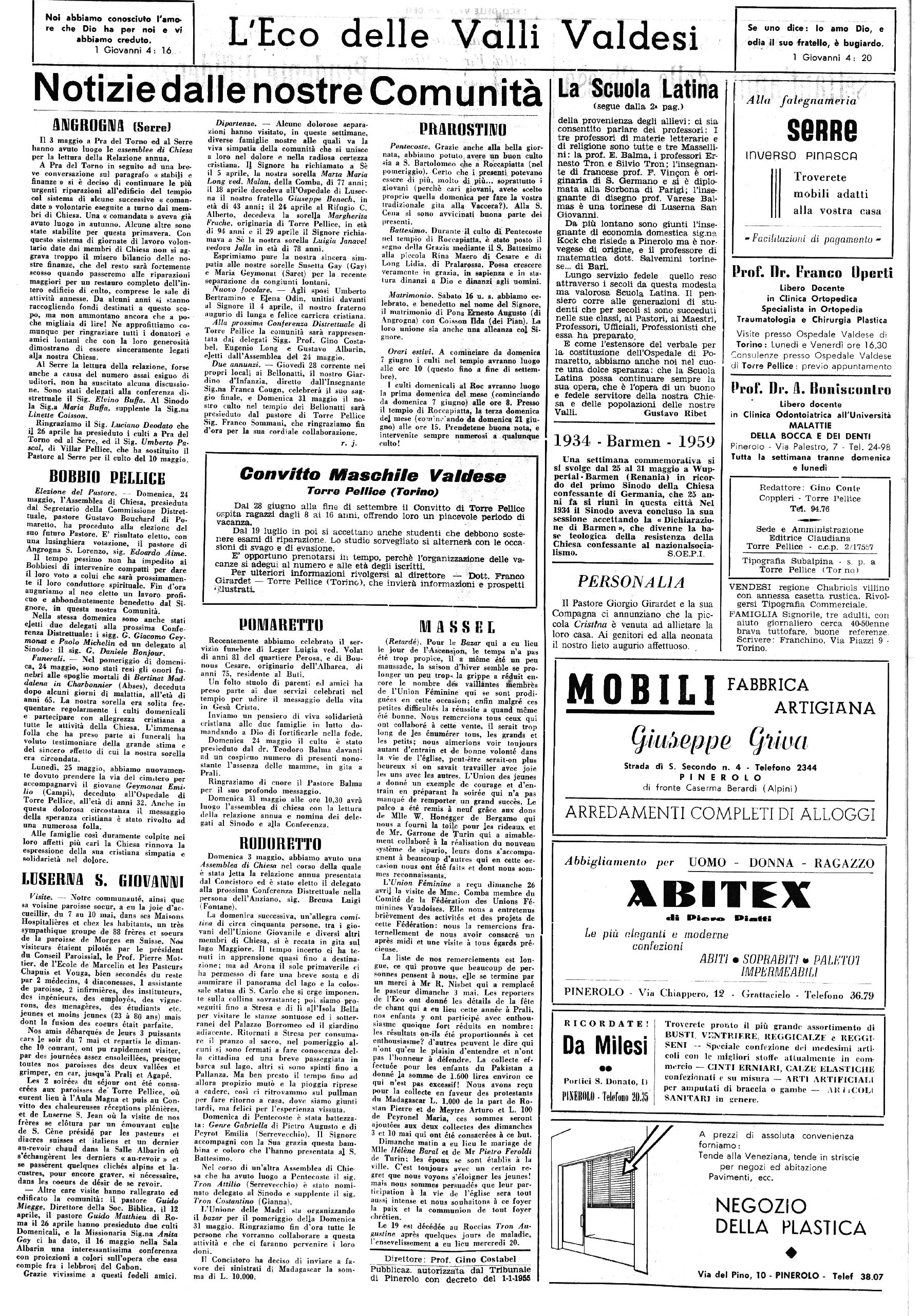 TORRE PELLICE - 29 Maggio 1959