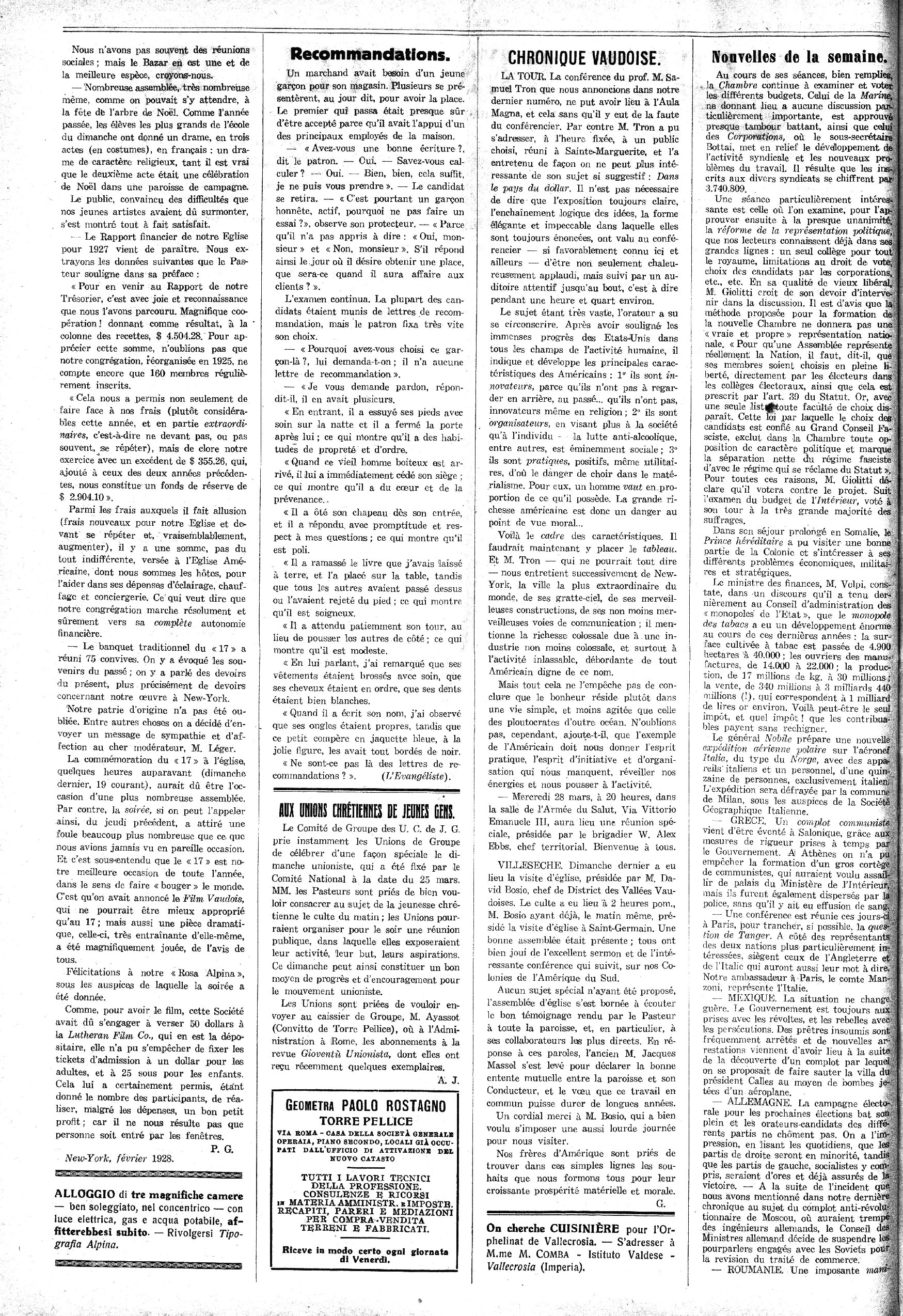 On s'abonne: à TorrePellice, au Bureau d’Administration de l’Echo