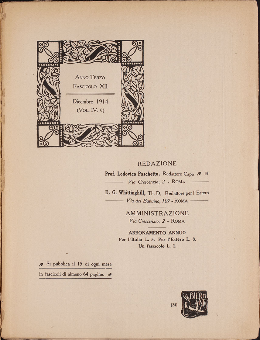 ------ Via Crescenzio, 2 - ROMA ---D. G. Whittinghil), Th. D.» Redattore peri’Estero ------ Via del Babuino, 107 - ROMA ■