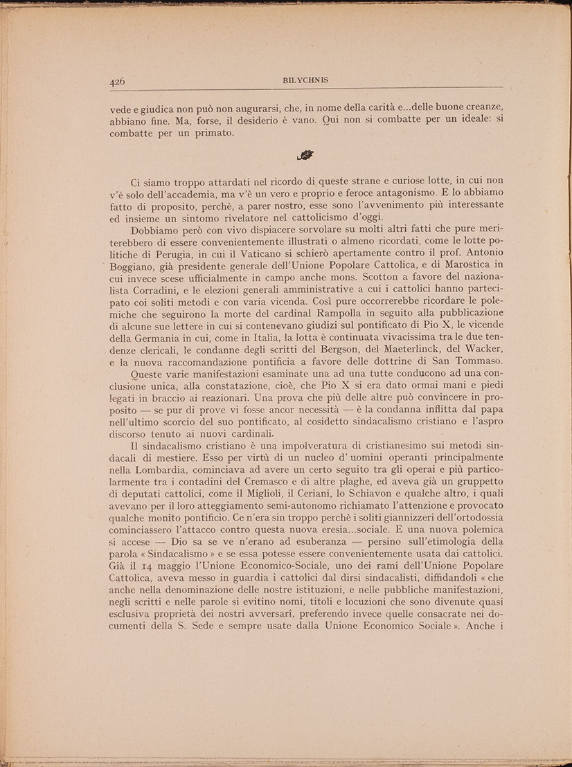 Completeremo questo speciale servizio, dando in ogni fascicolo parecchie pagine in cui raccoglieremo obbiettivamente tutto il materiale più minuto (notizie, voci e documenti) desunti dalla stampa religiosa francese, inglese e tedesca.