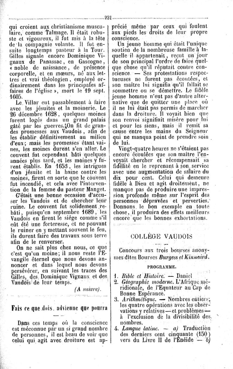 que dois, advionno que pourra. — Collège vauiiüis. — Société évangùiique de