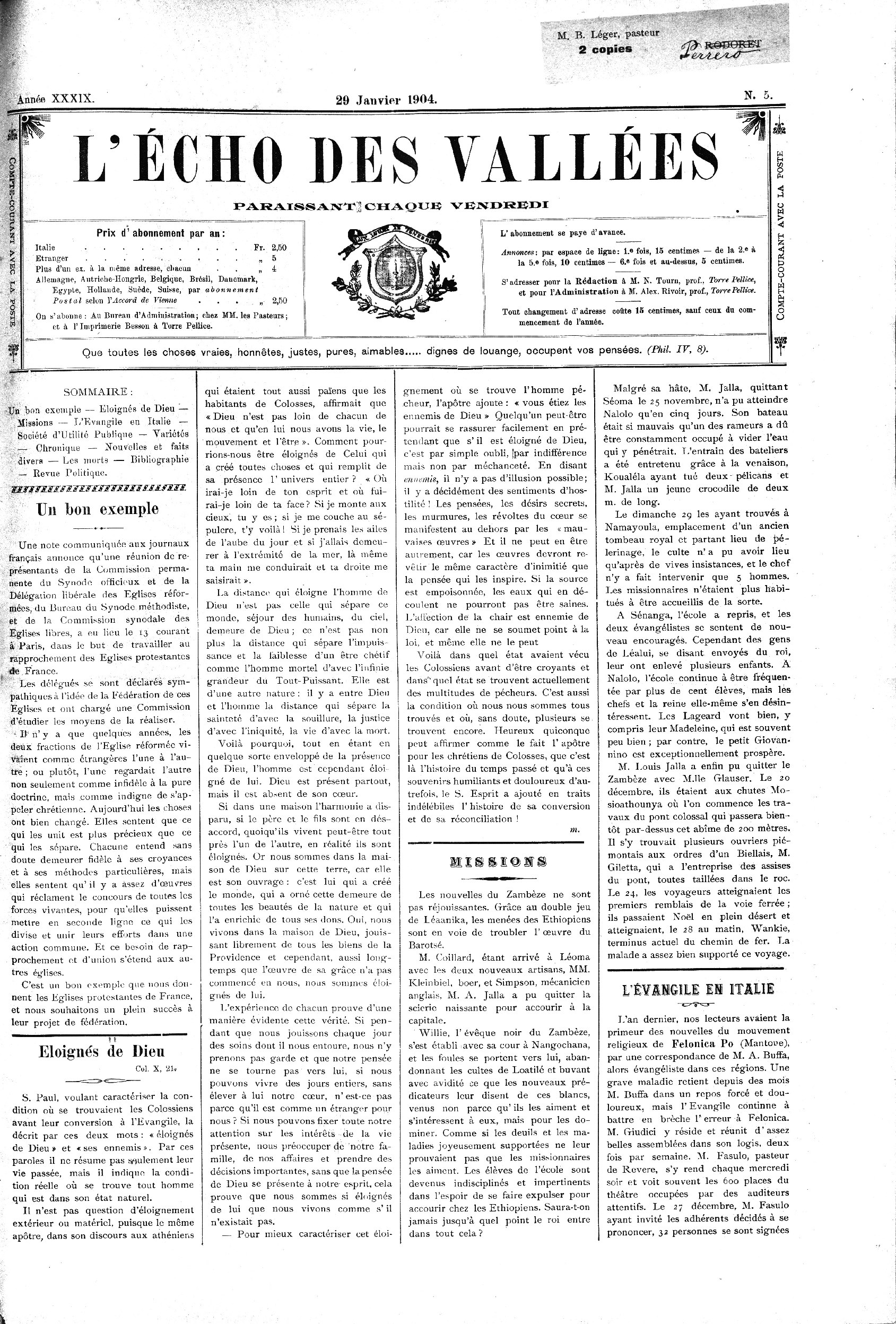 S’adresser pour la Rédaction à M. N. Toum, prof, Ton-e Pellice,