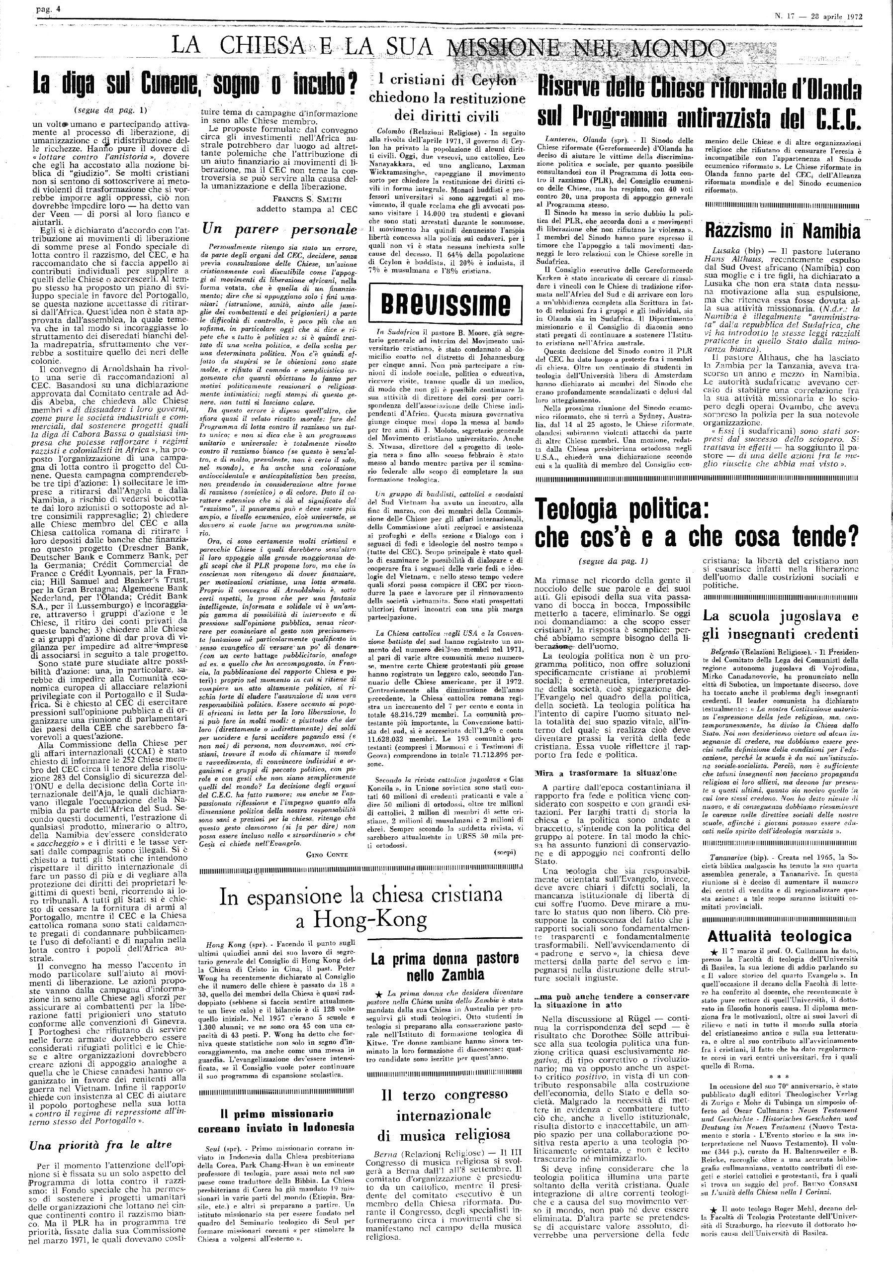 questo intreccio la chiesa ha pure riflettuto, fatto teologia. L’articolo di
