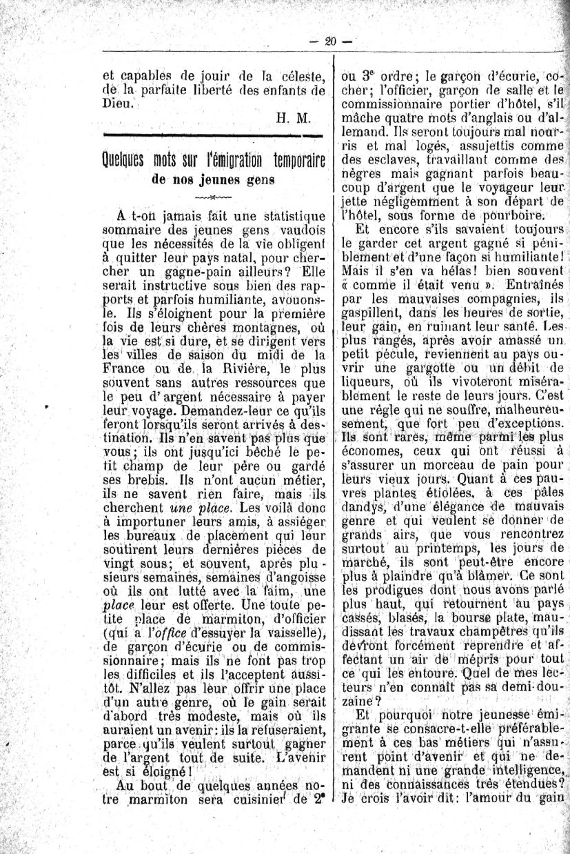 l'émigration temporaire de nos jeunes