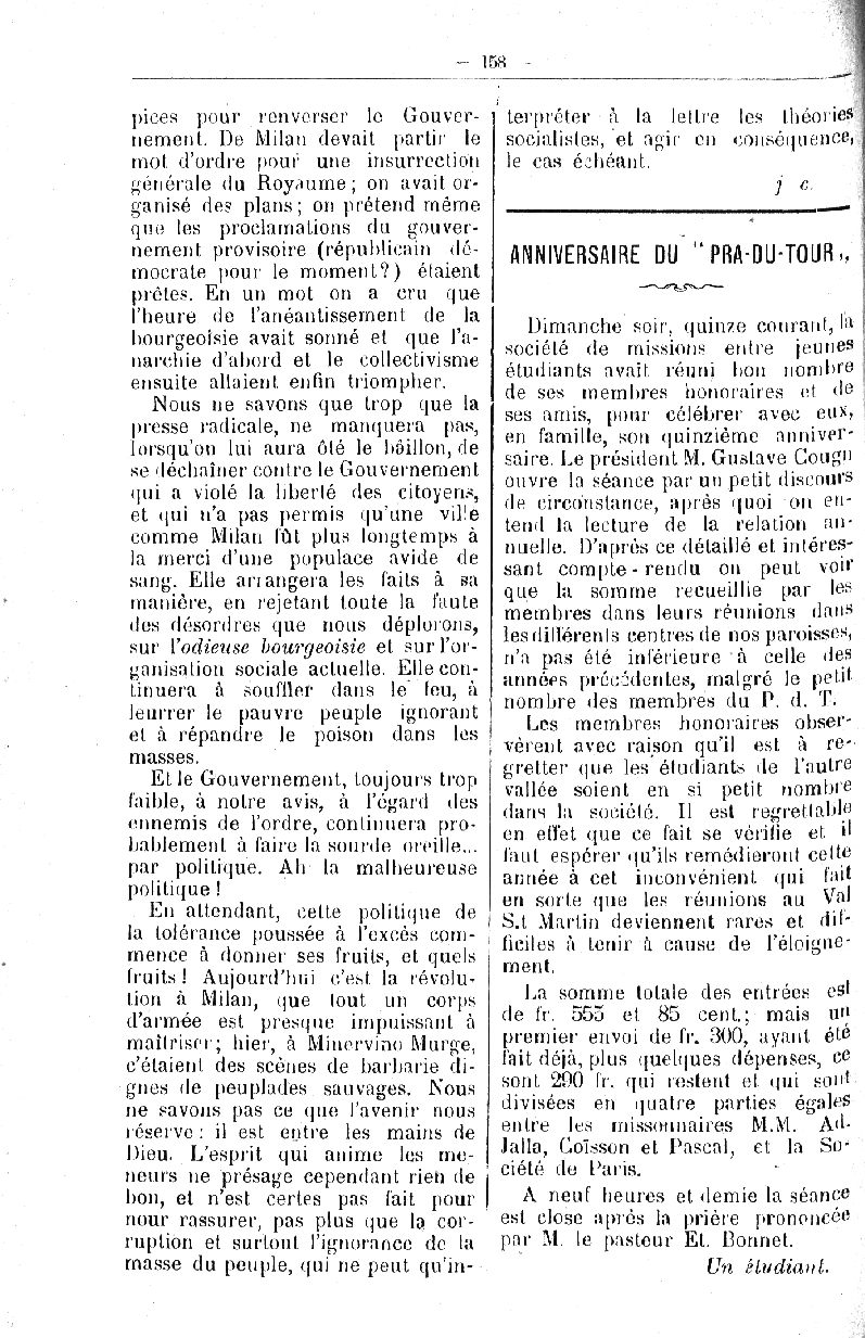 — Nouvelles du siècle passé A propos dos tumultes de Milan — Aiuiiversairo du « l’ra-dii-Tour » — Ouvrages t'eeu,s — ¡nformatiüiis ~ Revue